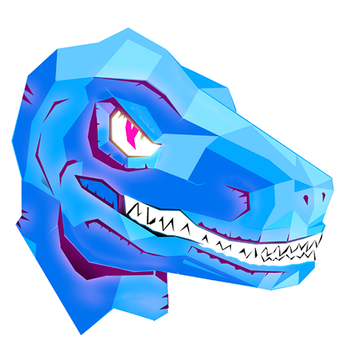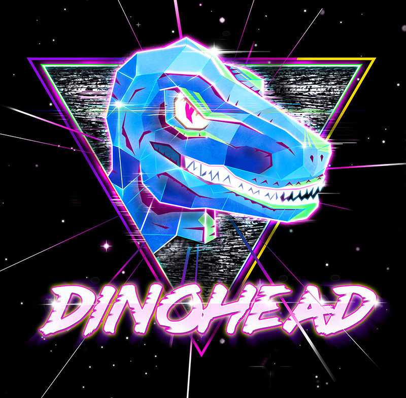 Cyberpunk / New Retrowave styled dinosaur logo design for Dinohead, LLC.